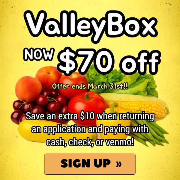 Offering a delicious selection of seasonal local vegetables, orchard fresh fruit, and our ValleyBox Fresh ProduceSubscription