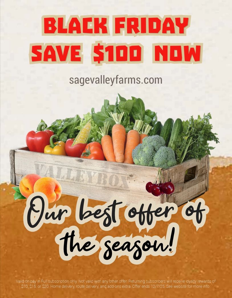 🚨 BLACK FRIDAY savings on ValleyBox! Sign up for the 2026 season and save $100 plus LOYALTY rewards for returning subscribers! Get a $10 gift card in year 2, $15 in year 3, and $20 years 4 and up! Season runs July - October, 2026. Visit the ValleyBox page to learn more!